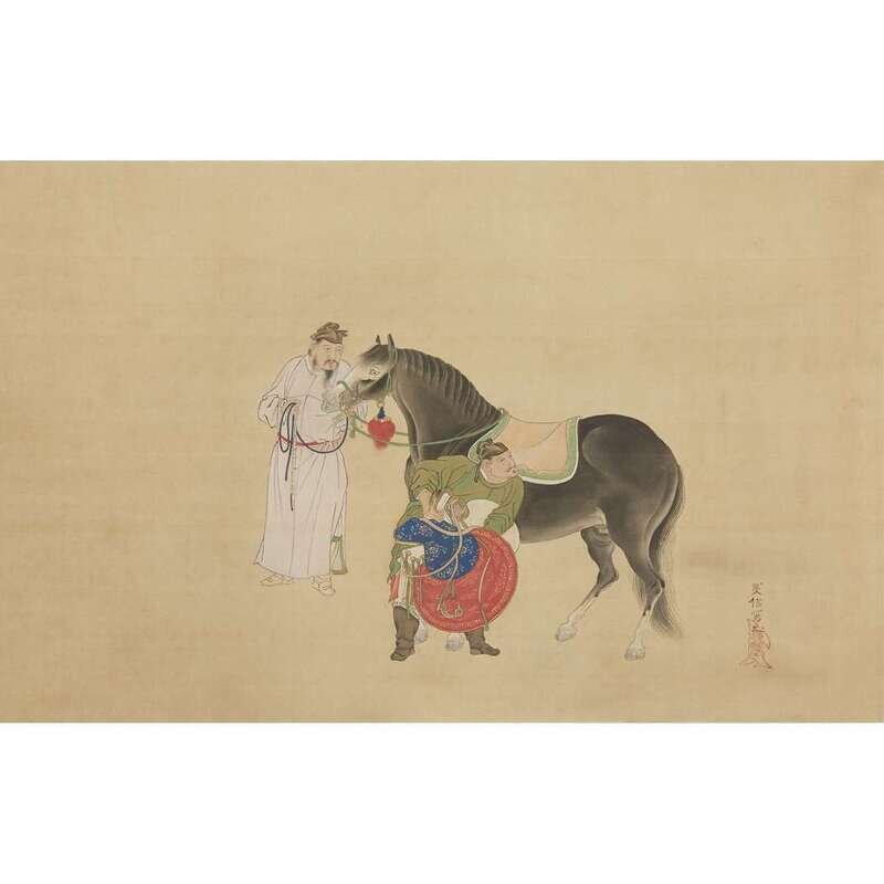 KANO YOSHINOBU MID TO LATE EDO PERIOD SADDLING A HORSE