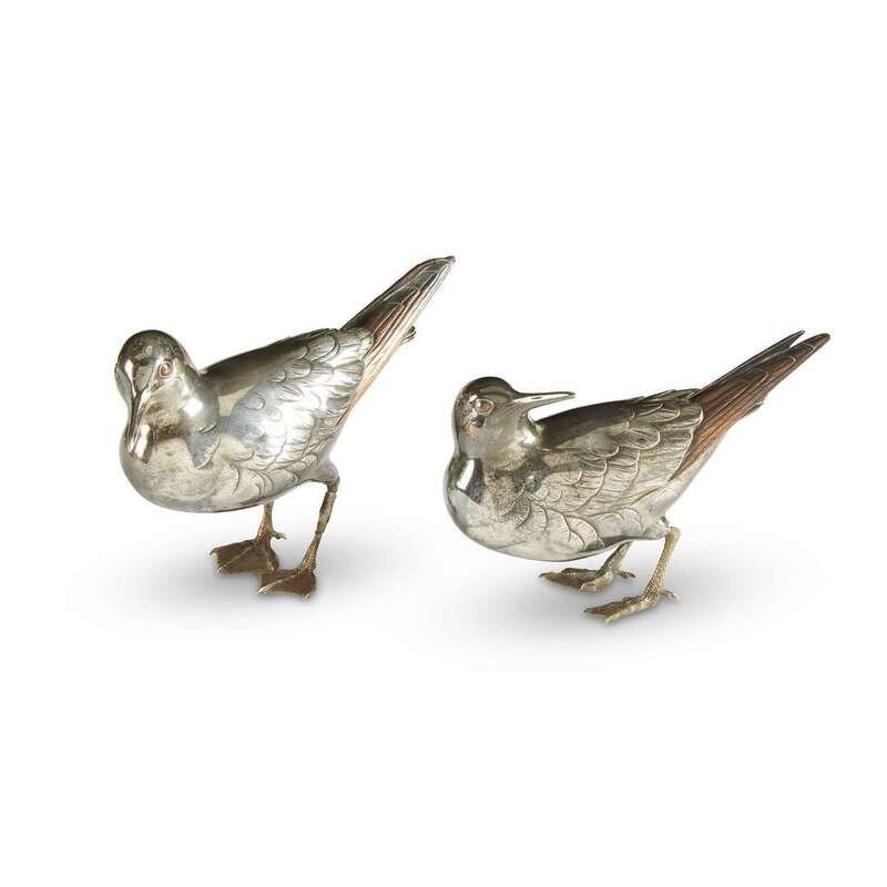 A pair of Japanese mixed metal birds