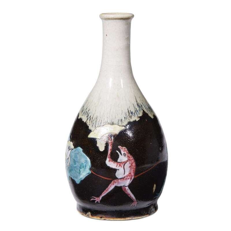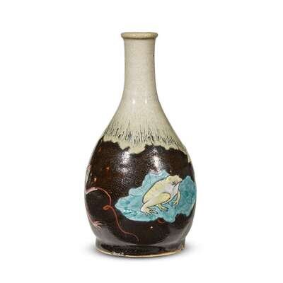 A Japanese enameled ceramic pear-shaped 'frogs' vase late 19th century