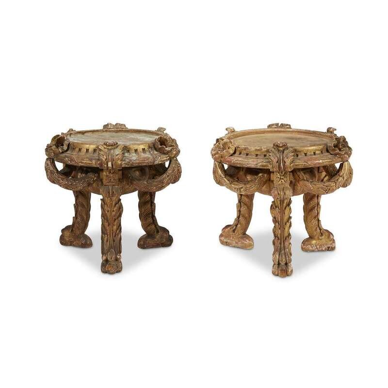 With ribbon-tied laurel swags, raised on three paw feet. (2).