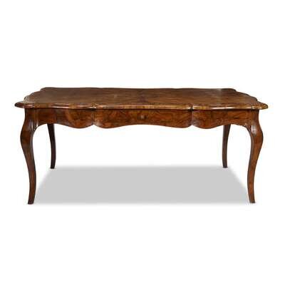 A Continental Rococo style walnut veneered bureau plat possibly Italian or South German, first half 19th century