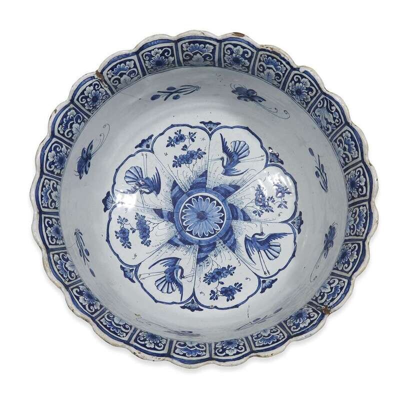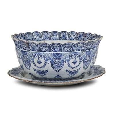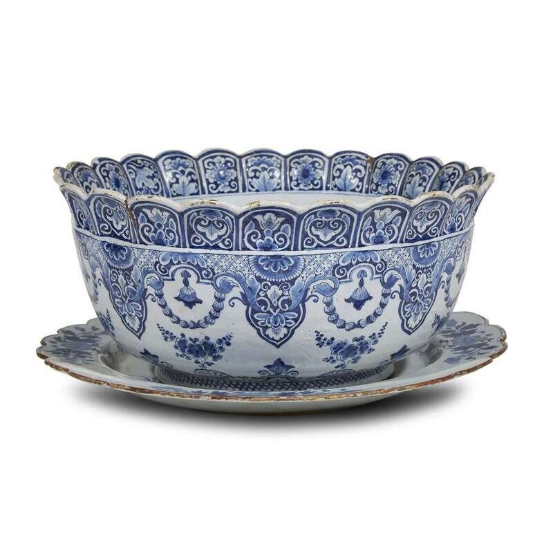 A Dutch Delft centerpiece bowl and stand late 17th century