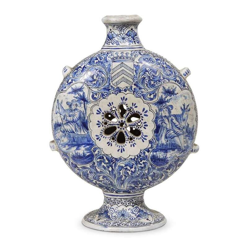 A Dutch Delft pilgrim flask mark probably for Dirck van der Does of De Roos factory, 18th century