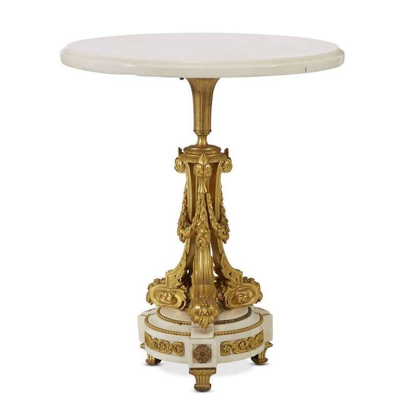 A small Napoleon III white marble and gilt bronze pedestal side table second half 19th century