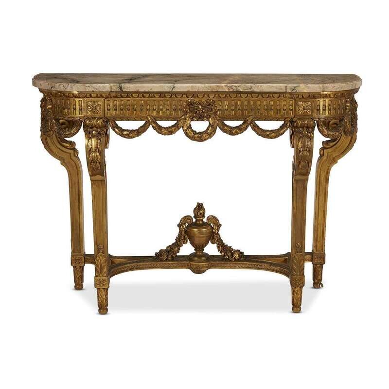 A Louis XVI carved giltwood console table with fior di pesco marble top early 20th century