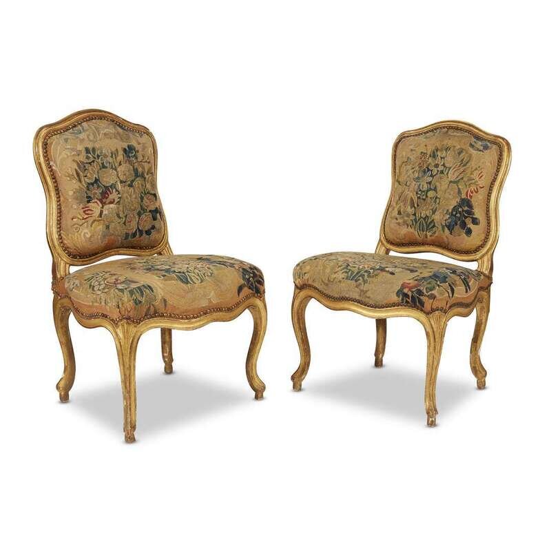 Each with Aubusson tapestry upholstery. (2).