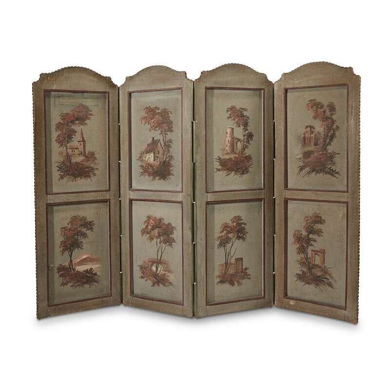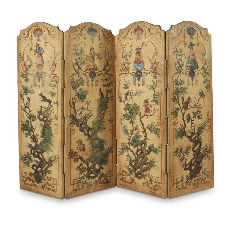 A French chinoiserie oil on canvas four-panel floor screen 19th century