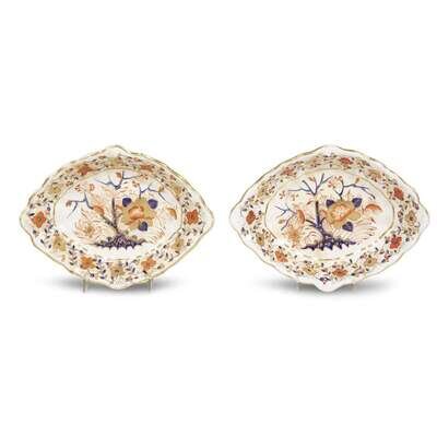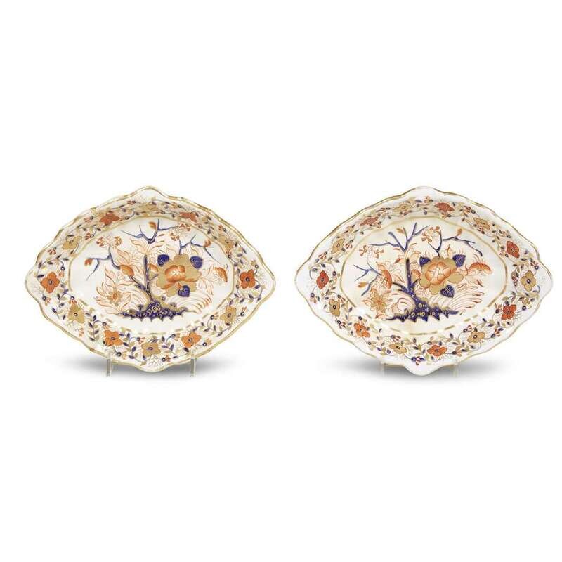 A pair of Derby 'Imari' style lozenge-form dishes first half 19th century