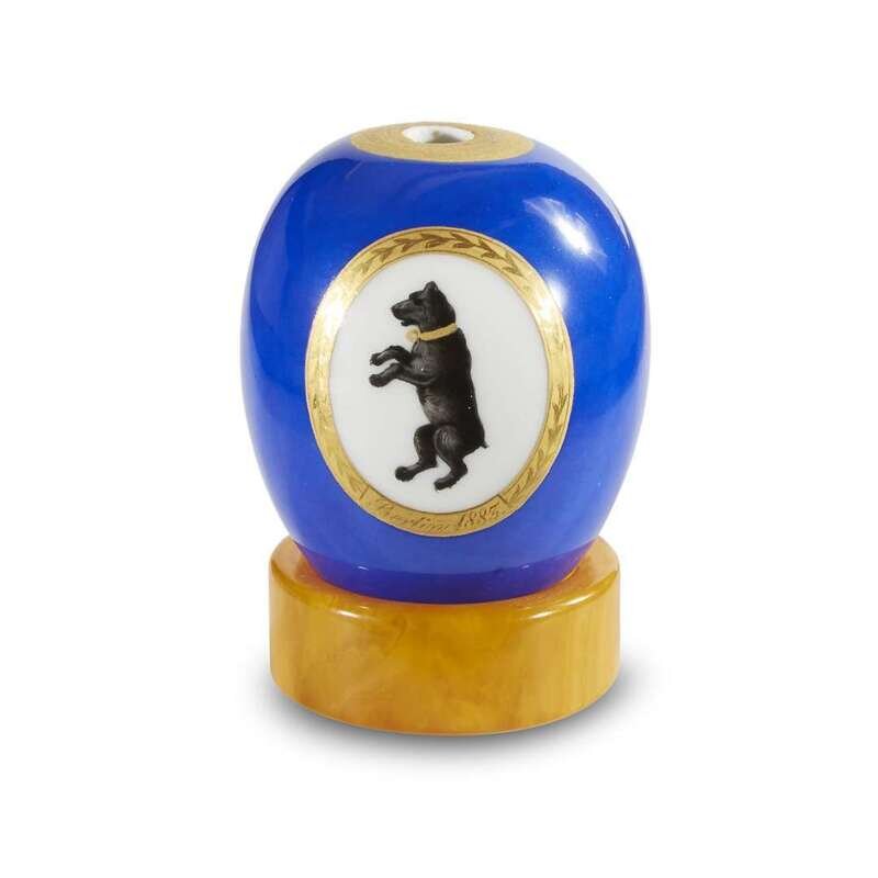 The reserve to recto depicting the Königliches Schloss, now destroyed, and the reserve to verso depicting the black bear of Berlin and titled "Berlin 1883;" without original cap and now with resin ring stand.