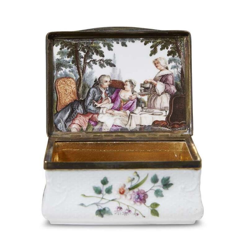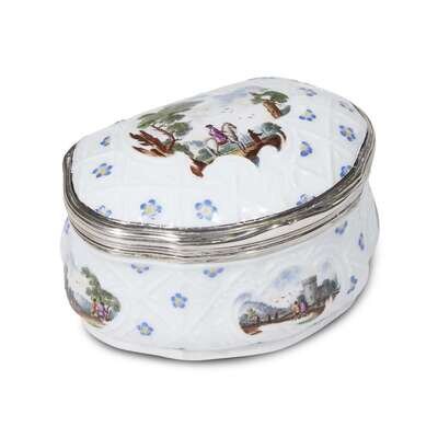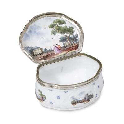 A German hand-painted porcelain patch box possibly Nymphenburg, 18th century