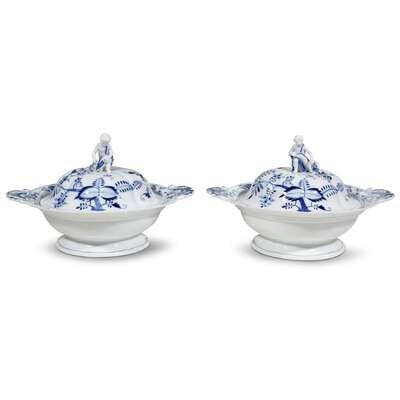 A pair of Meissen 'Blue Onion' porcelain covered tureens 1815-1860