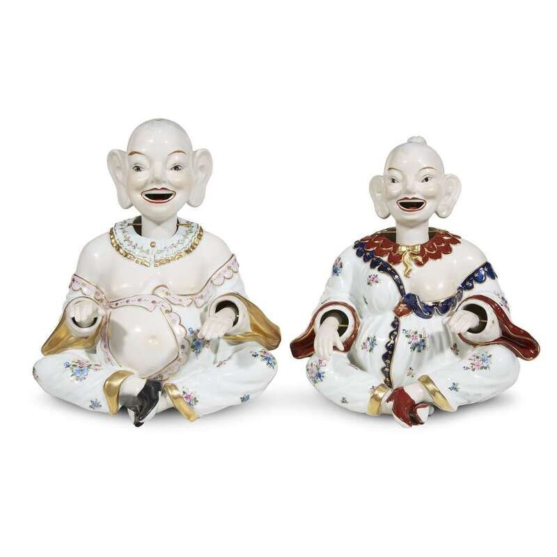 A monumental pair of Meissen porcelain nodding magot figures 20th century