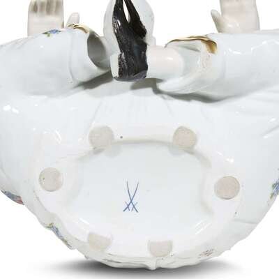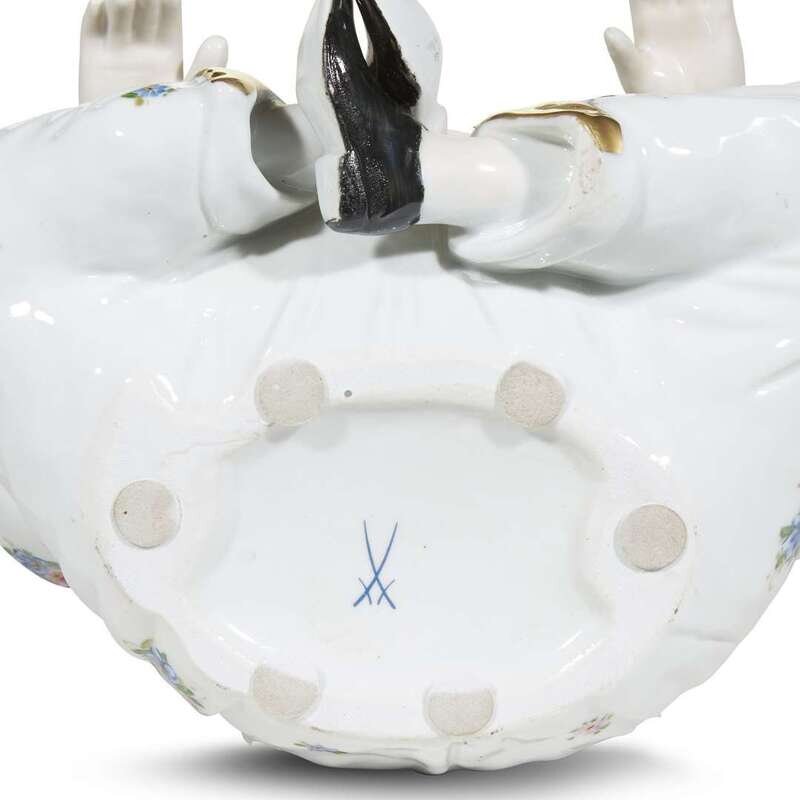 After the models by Johann Joachim Kändler (German, 1706-1775), the hands, head, and tongue all fully articulated; each with blue underglaze crossed sword mark to underside.
