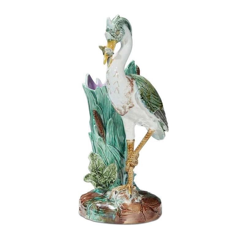 An English majolica stork vase circa 1875