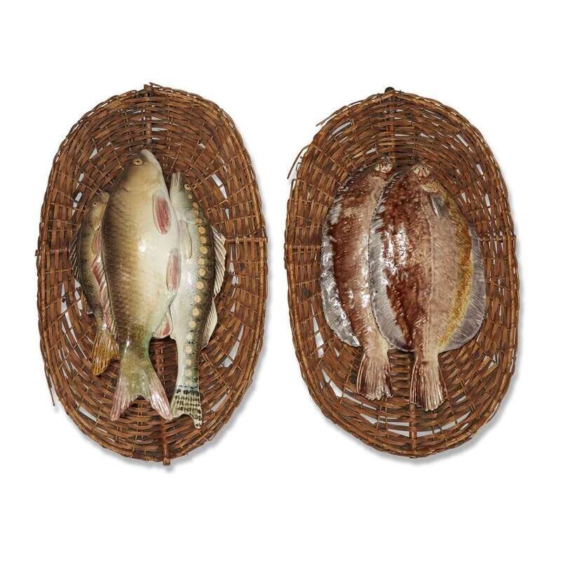 A pair of French majolica fish trophy plaques circa 1895