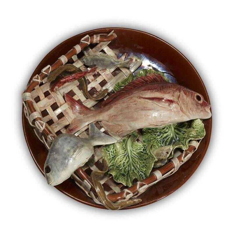 A Continental majolica sculptural platter late 19th century