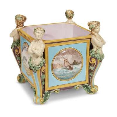A Minton majolica cachepot circa 1864