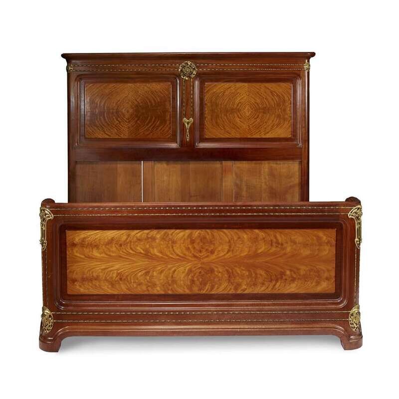 An Art Nouveau gilt-bronze mounted figured mahogany bedstead Louis Majorelle (French, 1859-1926), circa 1910