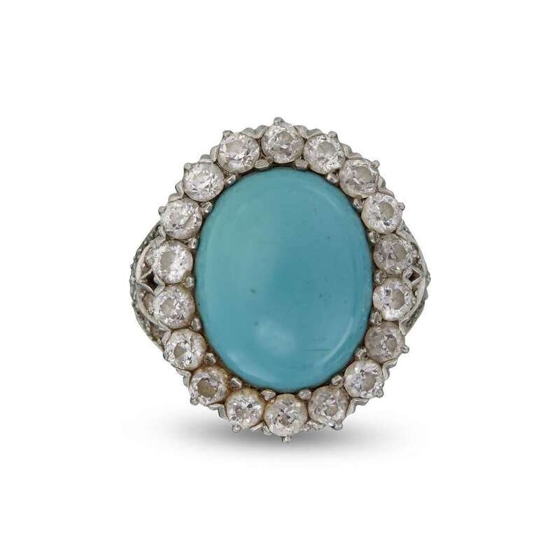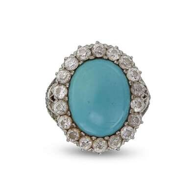 A turquoise, diamond, platinum and eighteen karat gold ring, J.E. Caldwell & Co.