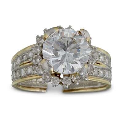 centering a round brilliant-cut diamond, weighing 3.10 carats, accented by round brilliant-cut diamonds, estimated total remaining diamond weight: 1.00 carat, partially obliterated Tiffany & Co. signature on shank.