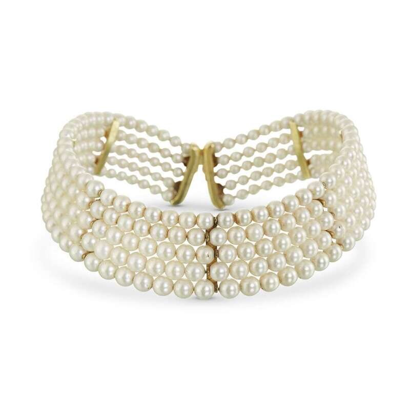 A cultured pearl collar necklace