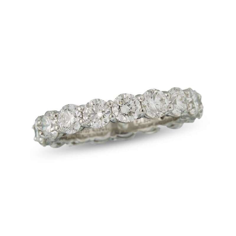 set with seventeen round brilliant-cut diamonds; estimated total diamond weight: 4.19 carats.