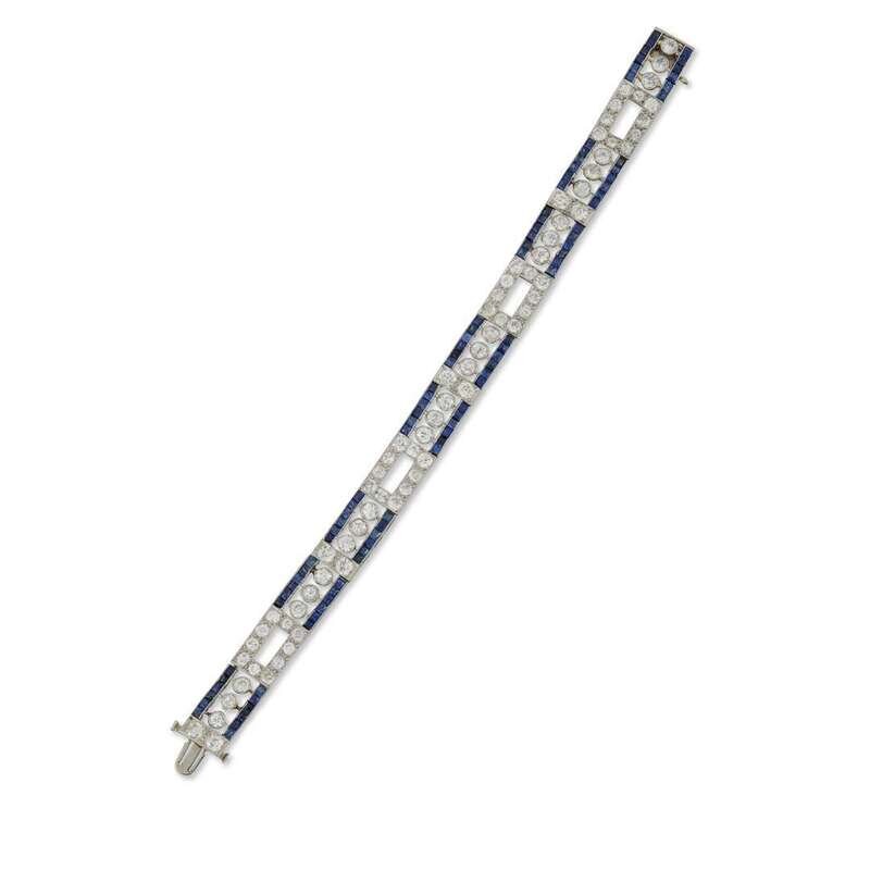 An Art Deco sapphire, diamond and fourteen karat white gold bracelet circa 1925