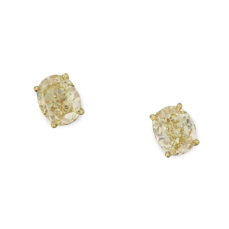 set with oval modified brilliant-cut diamonds, weighing 2.00 and 2.11 carats respectively.