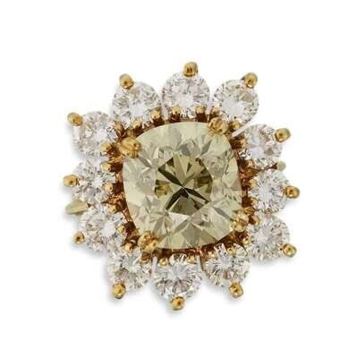 A colored diamond, diamond and eighteen karat gold ring