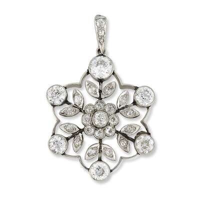 star-shaped, set with old European and single-cut diamonds, estimated total diamond weight: 2.70 carats.