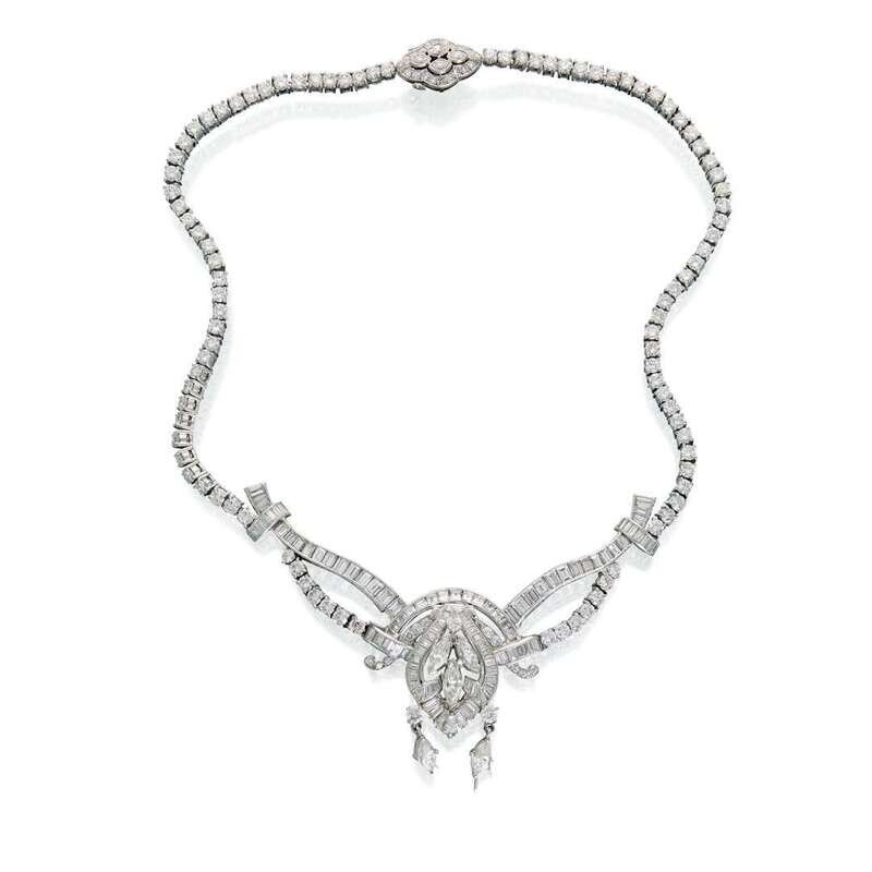 set throughout with round brilliant, marquise, baguette and square emerald-cut diamonds; estimated total diamond weight: 20.75 carats.