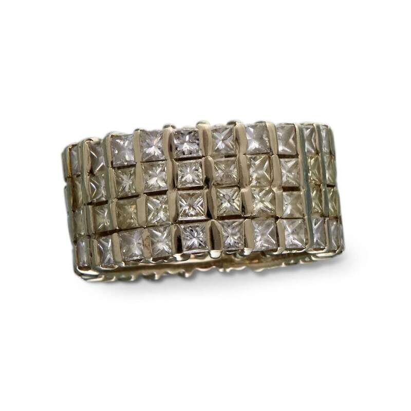 four row eternity band set throughout with princess-cut diamonds; estimated total diamond weight: 9.50 carats.