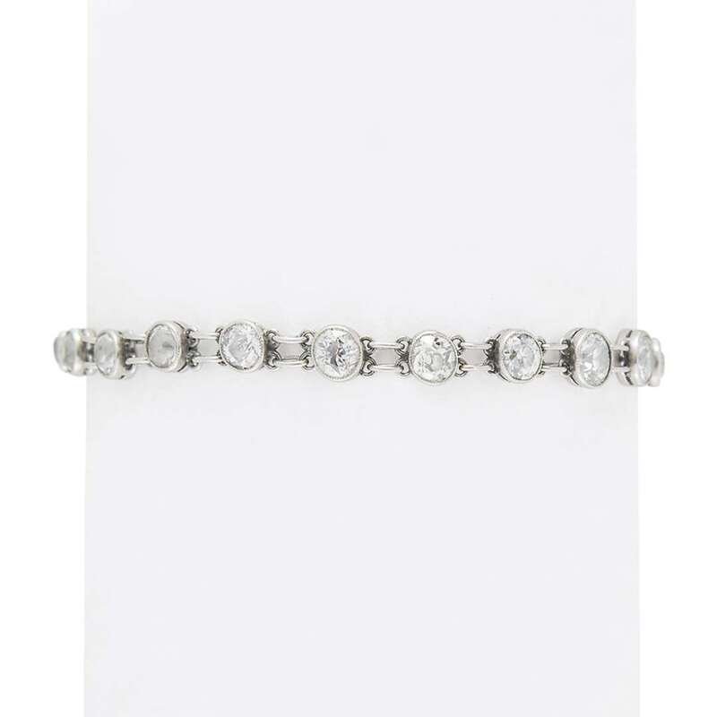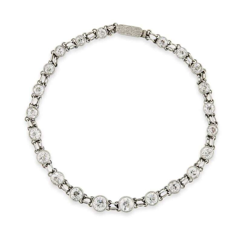 bezel-set with graduated old European-cut diamonds; estimated total diamond weight: 4.75 carats.