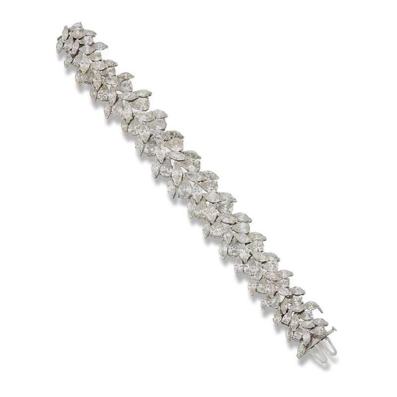 designed as a cluster of pear-shaped and marquise-shaped diamonds; estimated total diamond weight: 45.00 carats, set in a handmade platinum wire setting.