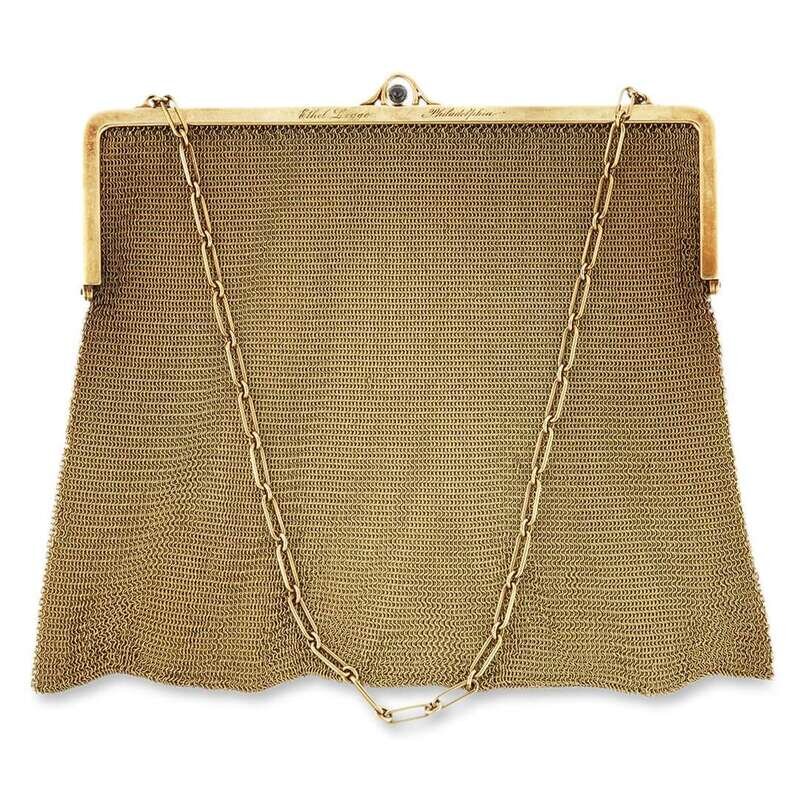 A fourteen karat gold mesh purse
