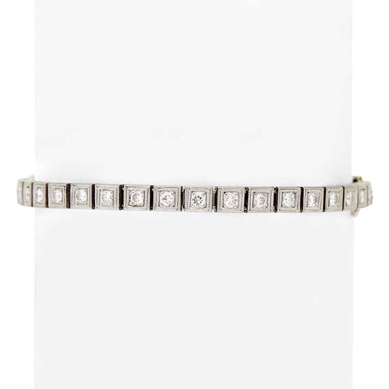 A diamond, simulant and platinum line bracelet