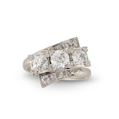 A diamond and platinum bypass ring