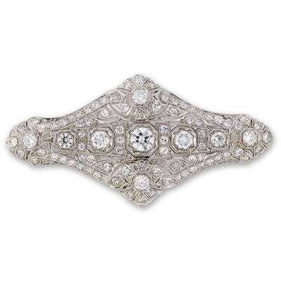centering an old European-cut diamond, weighing approximately 0.60 carat, accented by old European and single-cut diamonds; estimated total remaining diamond weight: 3.80 carats.