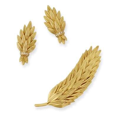 An eighteen karat gold brooch and matching earrings, Ilias Lallounis