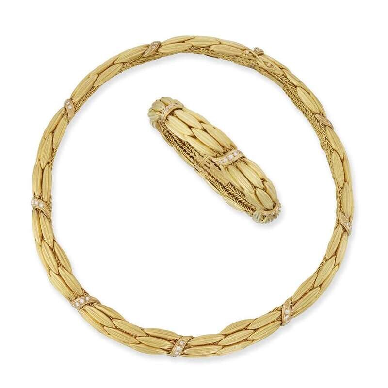 Gross weight: 105.4 dwt.; Necklace length: 16 in.; Bracelet length: 7 3/8 in.