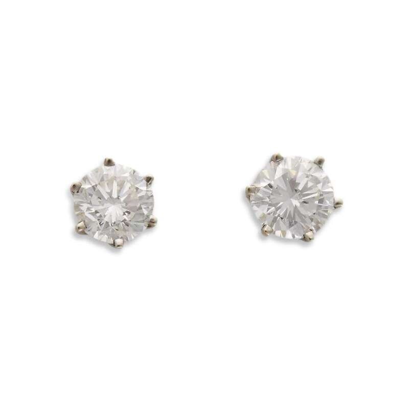set with round brilliant-cut diamonds, weighing approximately 0.85 and 0.95 carats respectively.