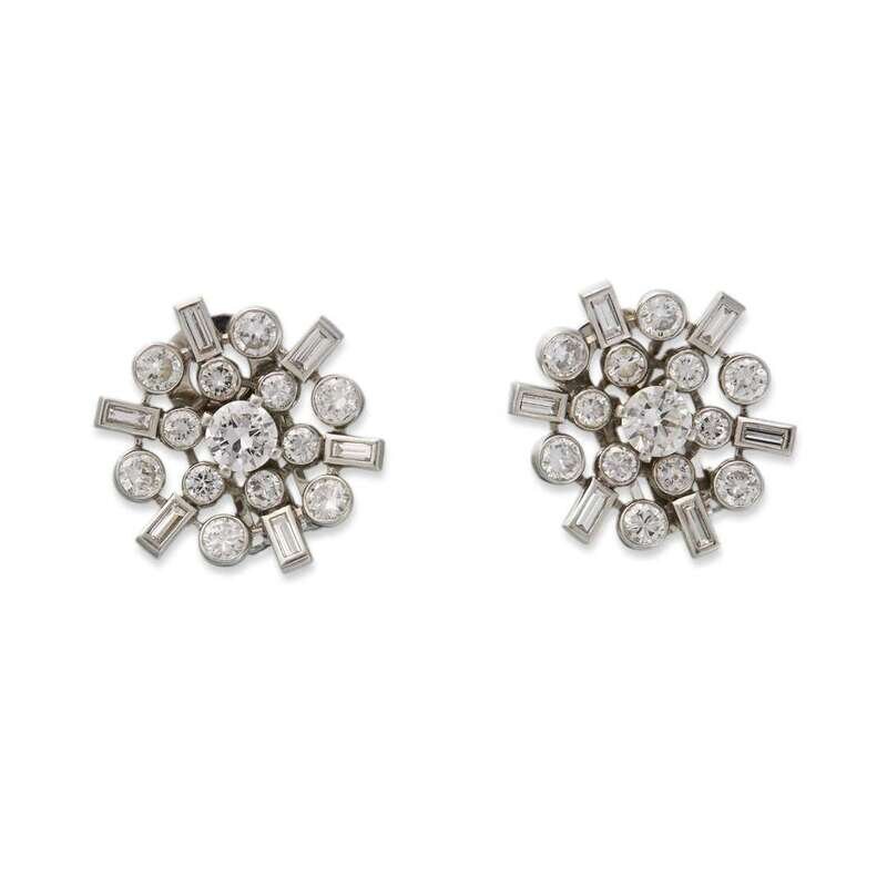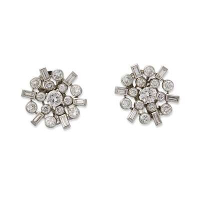 A pair of diamond and platinum earrings circa 1950