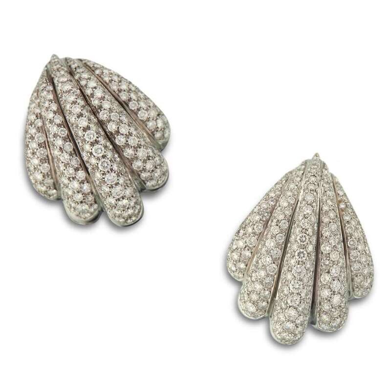 of fluted design set with round brilliant-cut diamonds; estimated total diamond weight: 8.00 carats.
