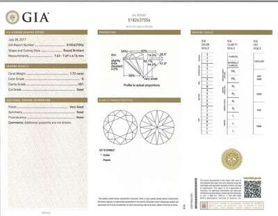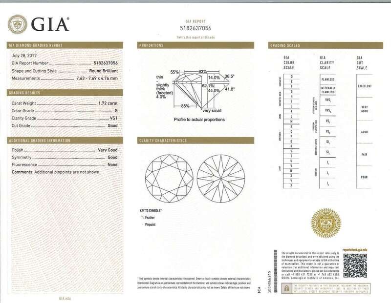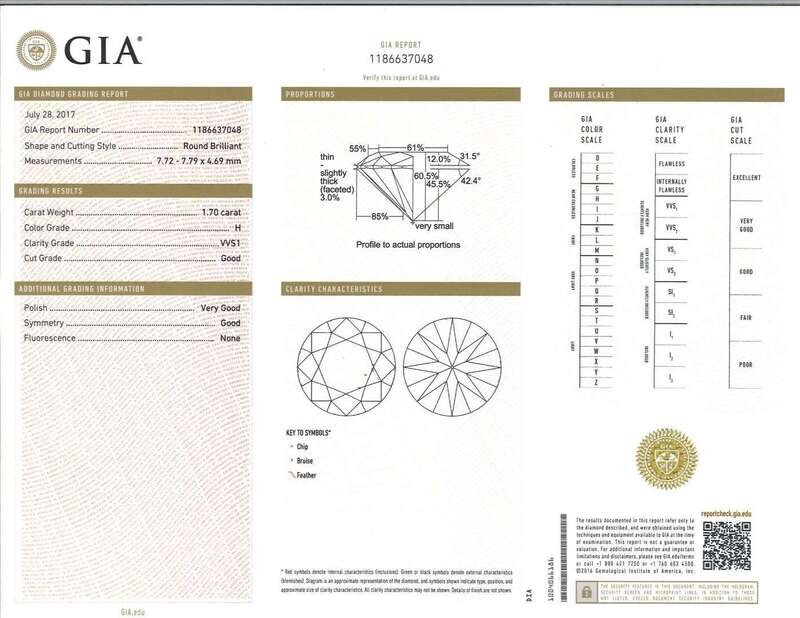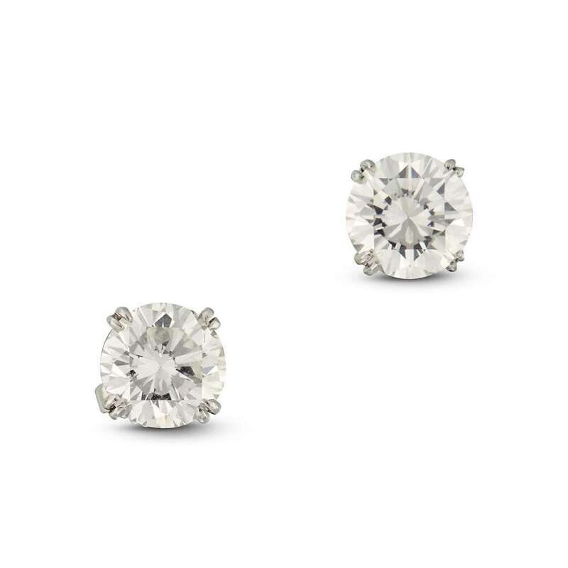 set with round brilliant-cut diamonds, weighing 1.70 and 1.72 carats respectively.