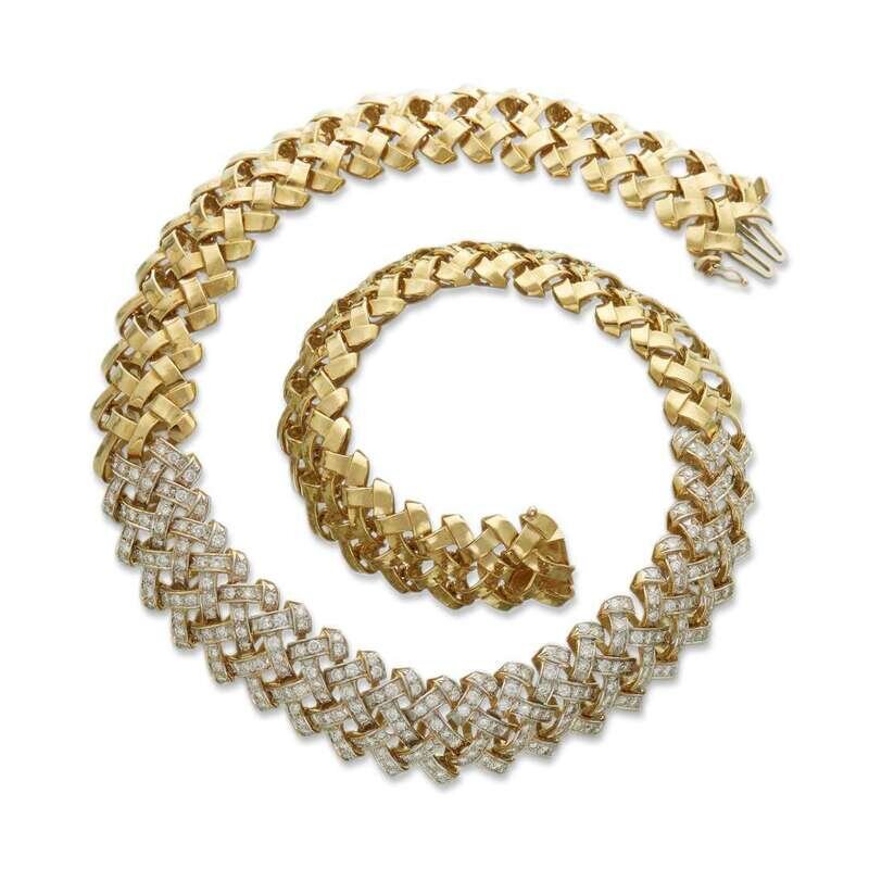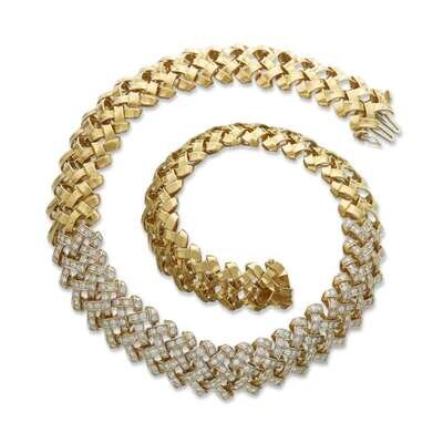 A diamond and eighteen karat gold braided necklace