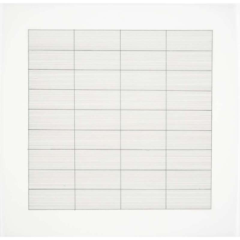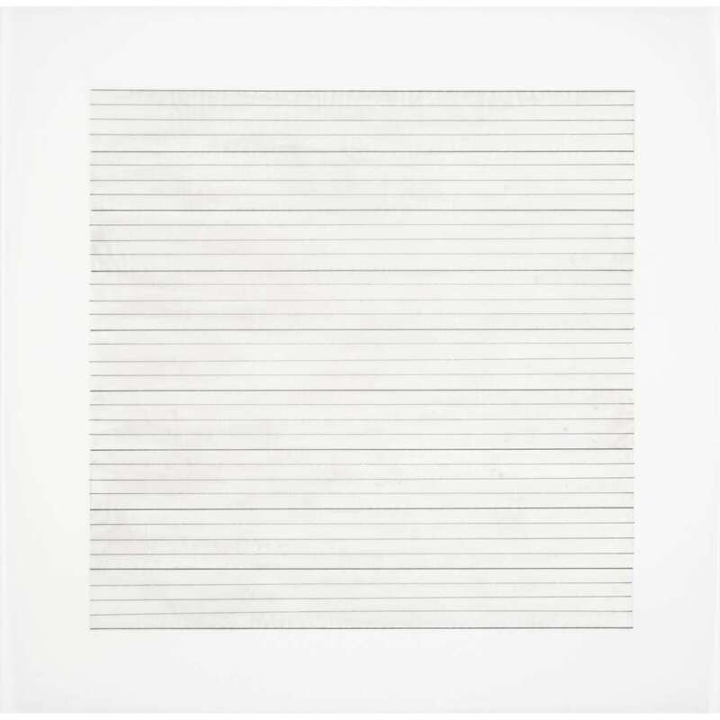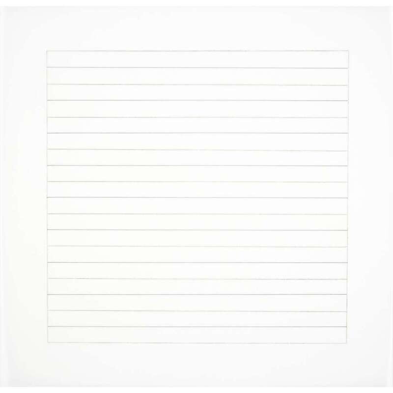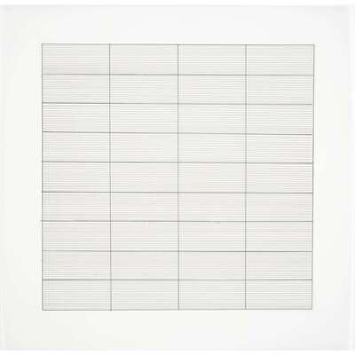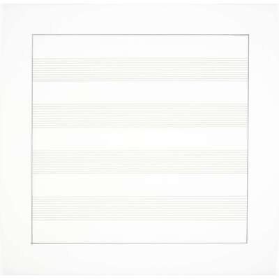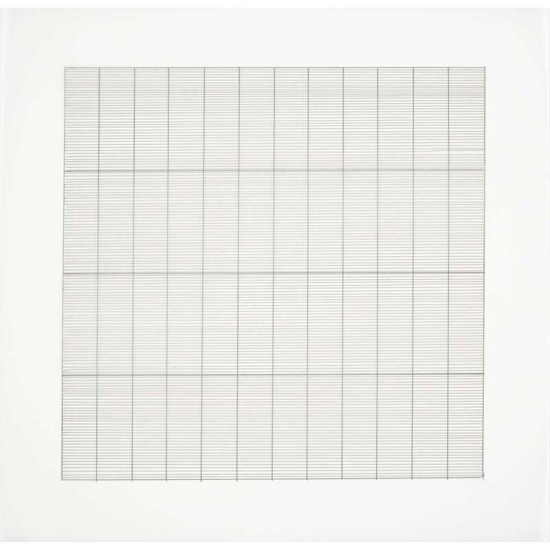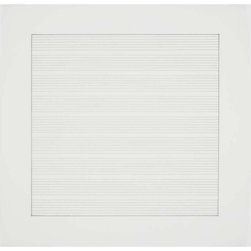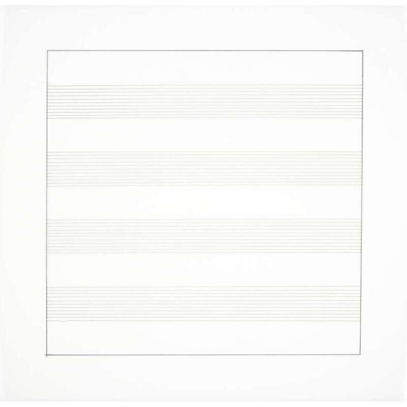 1990-1991, from the edition of 2,500 printed by Lecturis, Eindhoven and published by Nemela & Lenzen GmbH, Monchengladback and Stedelijk Museum, Amsterdam for Agnes Martin's 1991 retrospective at the Stedelijk Museum, the complete portfolio of 10 lithographs loose (as issued) on vellum within original slipcase and accompanied by a two-part catalogue produced for the exhibition.