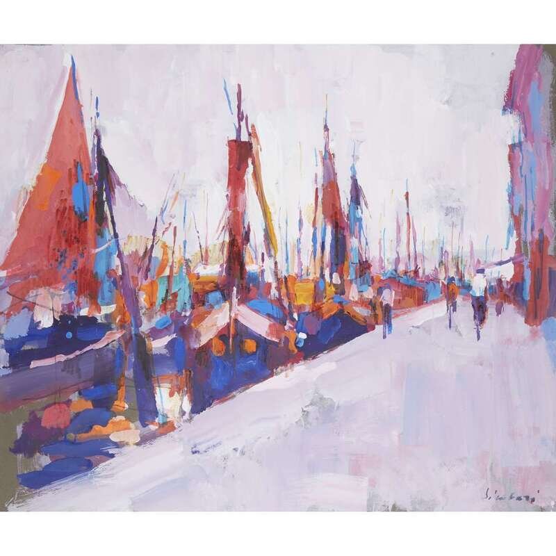 NICOLA SIMBARI (ITALIAN, 1927-2012) SHIPS AT HARBOR