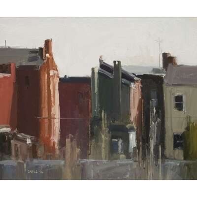 STUART SHILS (AMERICAN, B. 1954) "KENSINGTON ROWHOUSES, MORNING LIGHT"