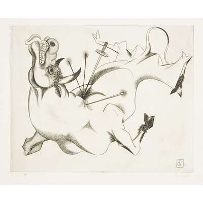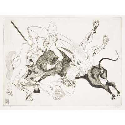GABOR F. PETERDI (AMERICAN, 1915-2001) "BLACK BULL"THE COMPLETE PORTFOLIO OF SEVEN PRINTS