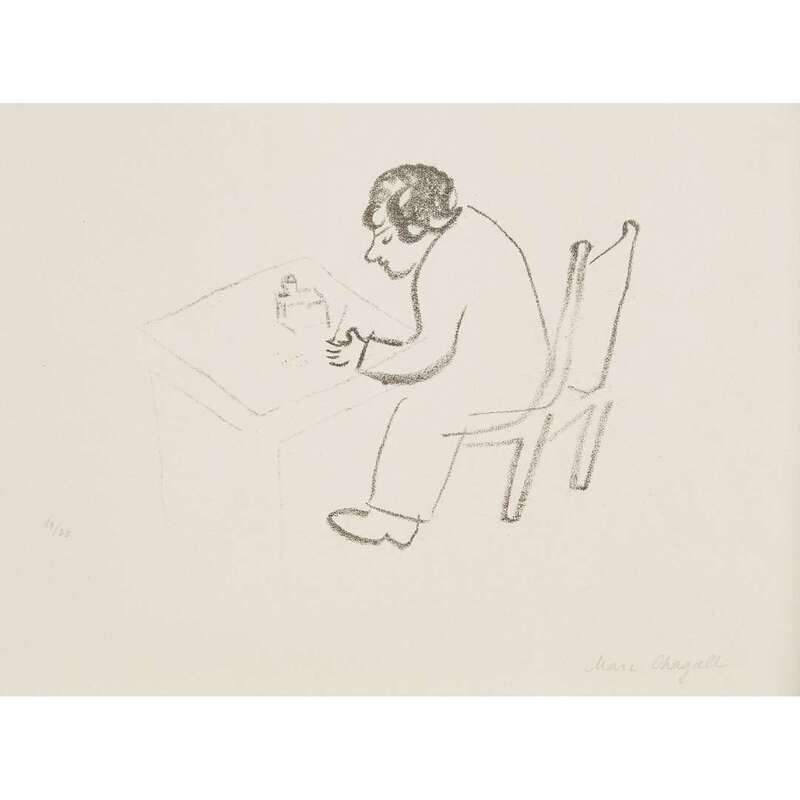 MARC CHAGALL (FRENCH/RUSSIAN, 1887-1985) "AM TISCH (AT THE TABLE)"